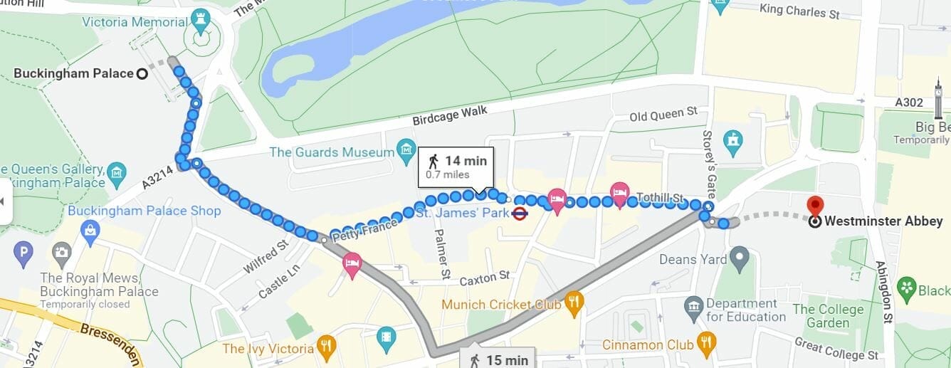Walk from Buckingham Palace to Westminster Abbey to take a peek of the outside of this iconic thing to do in London.
