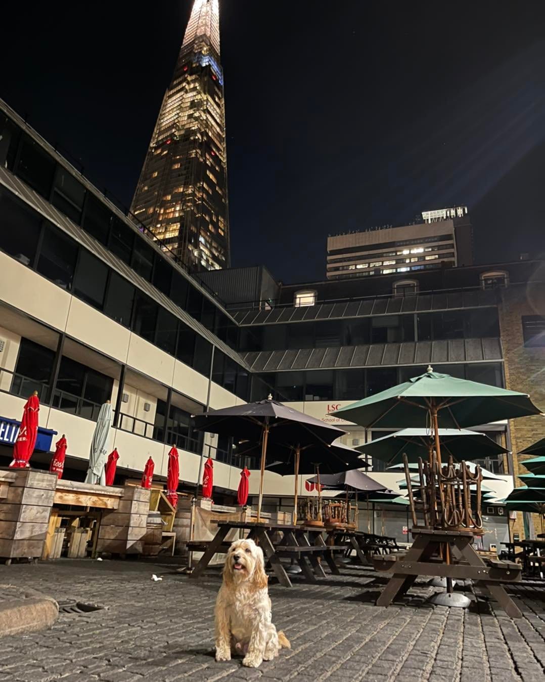 I find that this part of London really comes into its own in the evening, when the string of lights above the walkways are lit up and you can see the London Bridge area in a whole new way