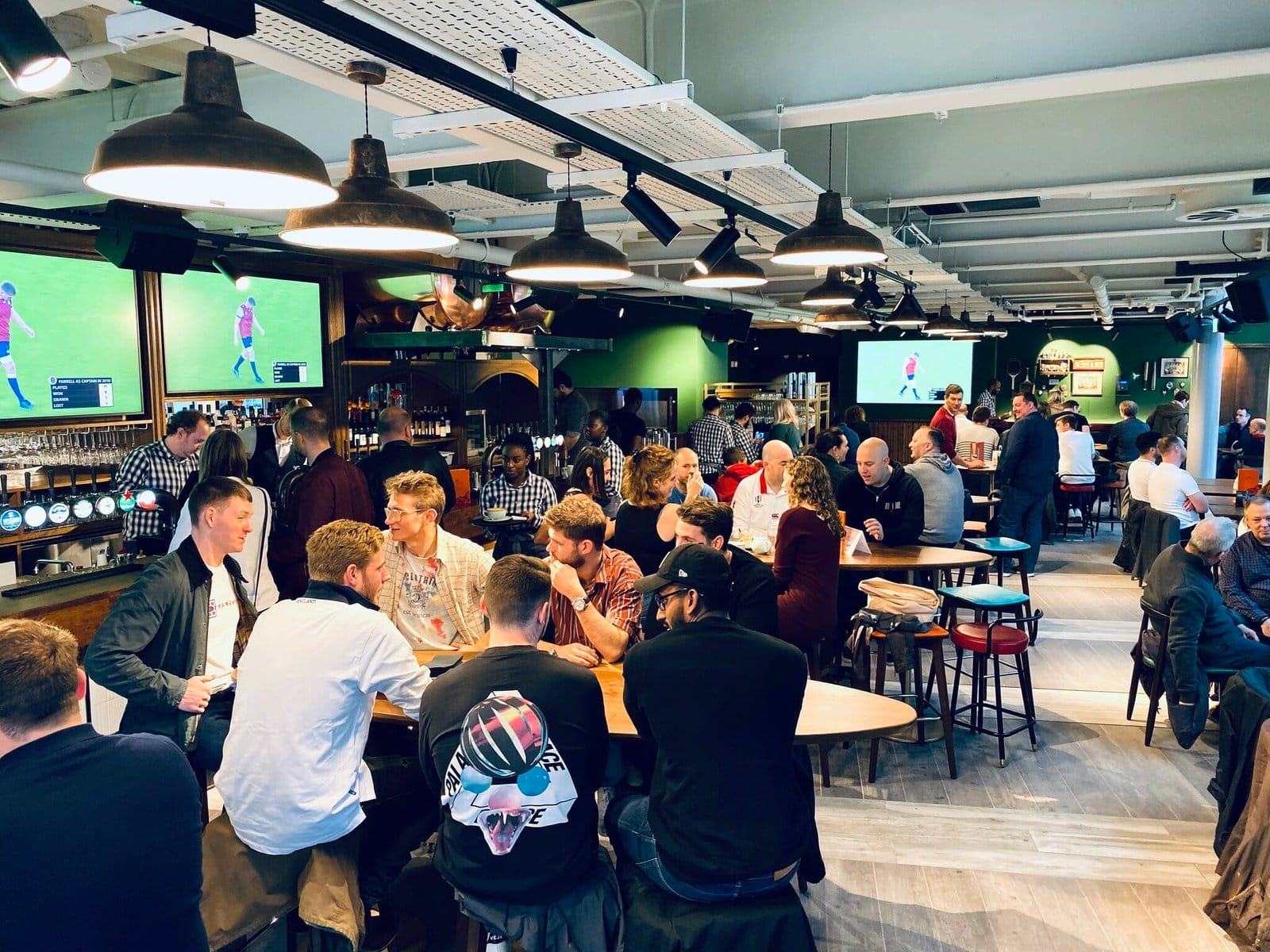 A big space with screen after screen, all the drinks and food you could want to get you through the game, while the hip industrial interior gives the classic sports bar a bit more of a modern feel.
