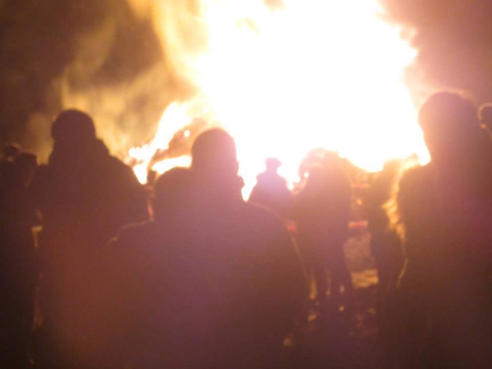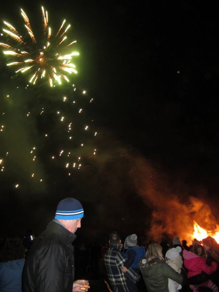 People are invited to bring any wood or furniture that’s being thrown out to add to the fire, and the firemen are invited to watch while the countryside burns as they drink mulled wine help keep everything under control.