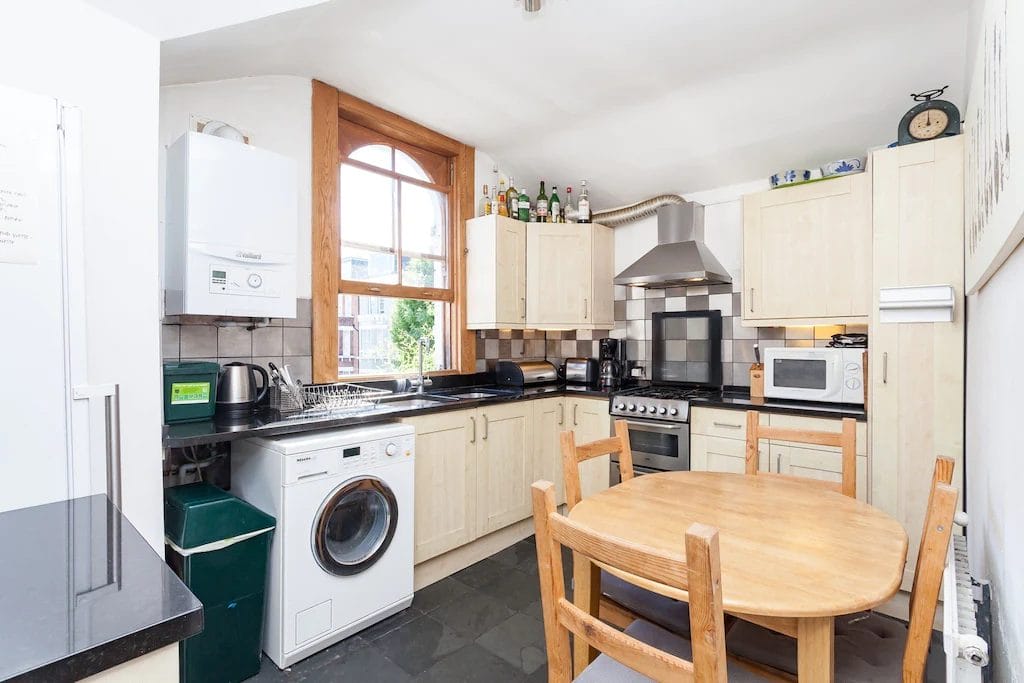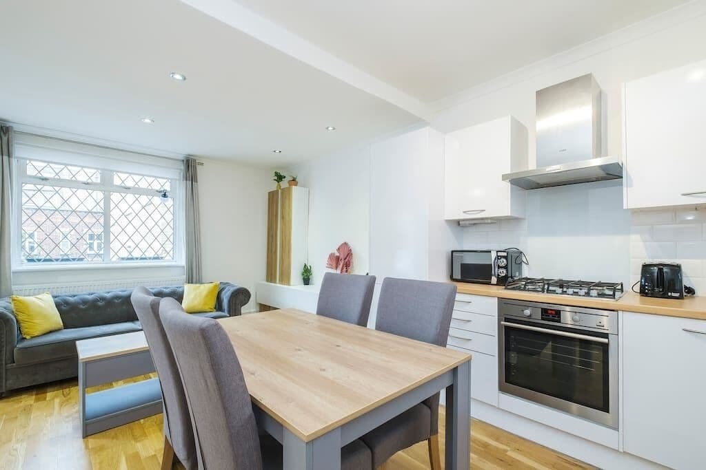 The kitchen and living room are massive (for London standards) and well-decorated and equipped, so you feel like you’re staying in a true home rather than a smaller townhome or flat.