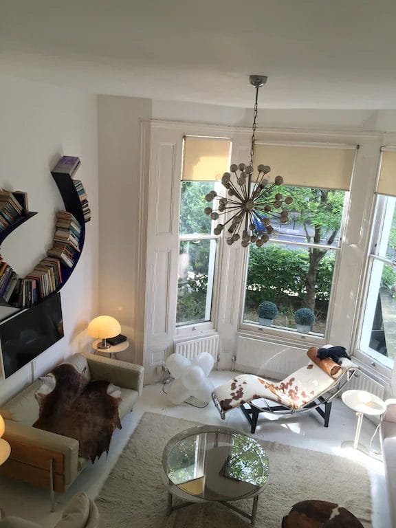 The flat is one of the “homiest” ones you can find in London, and you won’t feel like you’re staying in a stark hotel room or boring AirBnb with no character, but instead your own oasis of bookshelves, comfy rugs, and beautiful furniture pieces.