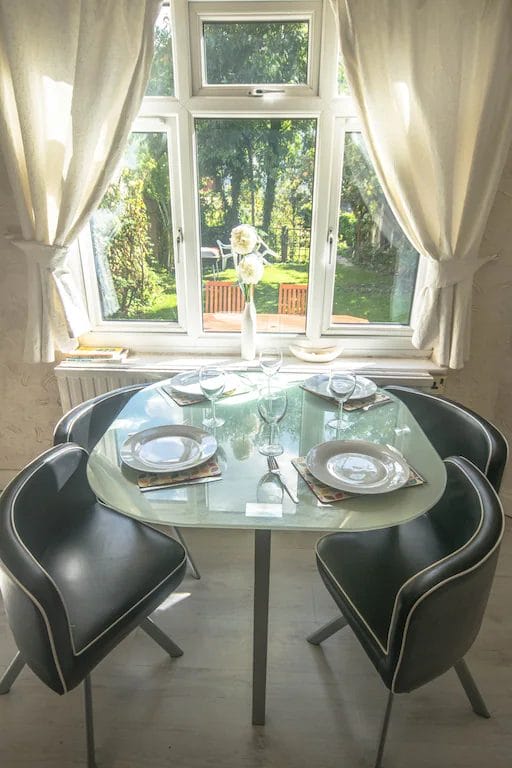 Not only will you get a gorgeous outdoor space with treetop views, but there’s a fire pit to use while you talk about your day and enjoy your final tea of the day (yes, you’re in England, so you must drink tea!)