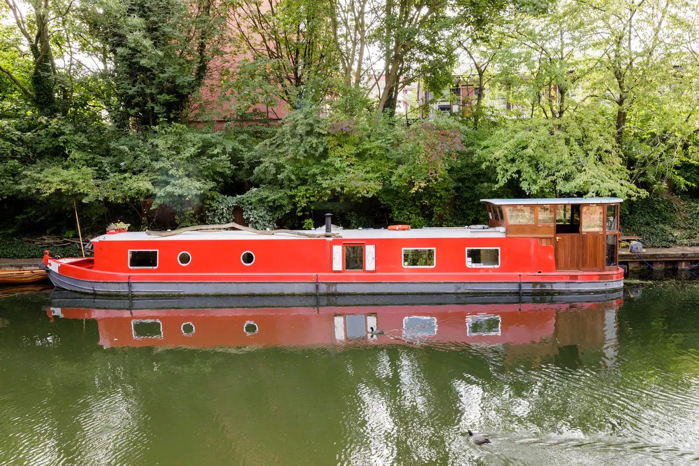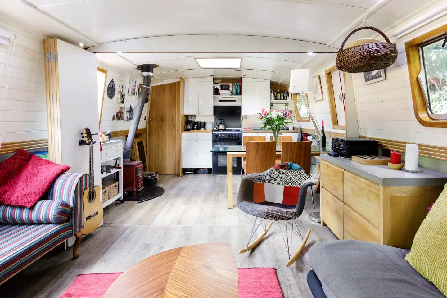 Hop onboard this houseboat moored in the canals of London and enjoy everything from the onboard fireplace (seriously) to the full kitchen and multiple bedroom and bathrooms.