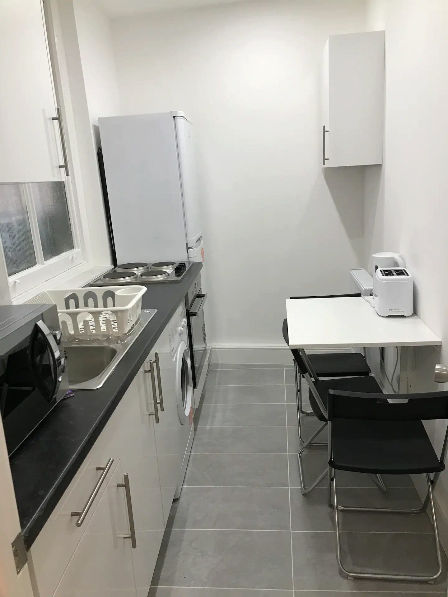It’s a 5 minute walk to the nearest tube station and there are kitchen amenities for some cooking.