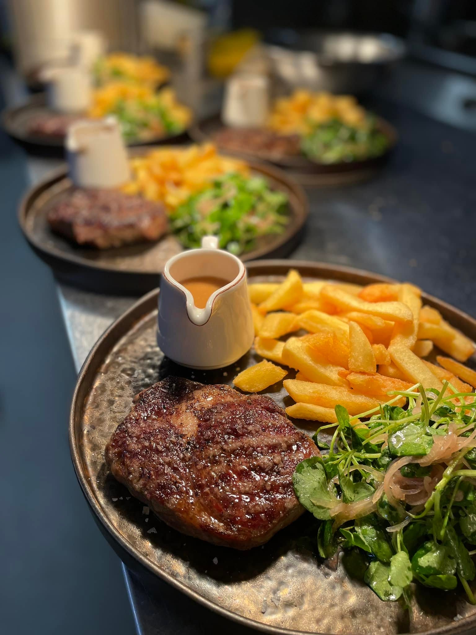 Whether you’re staying in one of the cozy hotel rooms upstairs or simply stopping in for a dinner, the restaurant serves up delicious, homely cuisine including fish and chips, steak and roast.