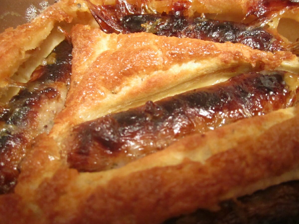 The pastry is completely closed over the fillings, so it sort of looks like a little package of pastry and you then discover the filling inside when you bite into it.