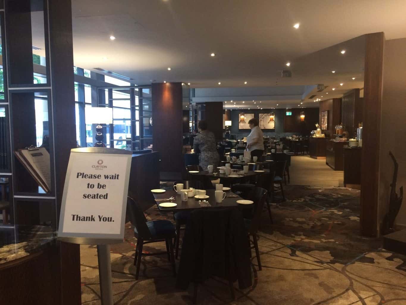 If you want to eat the buffet breakfast, you wait until you are seated and then shown to a table.
