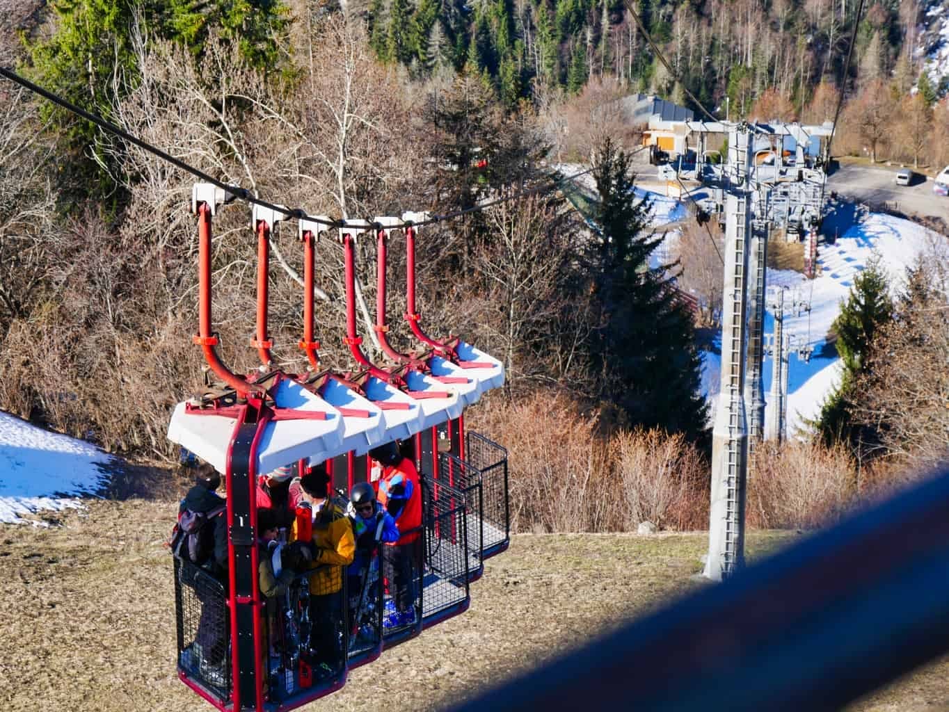To get to our Nordic skiing destination, we had to get to Peisey’s Nordic Ski site, which was one “bucket lift” and then a bus ride.