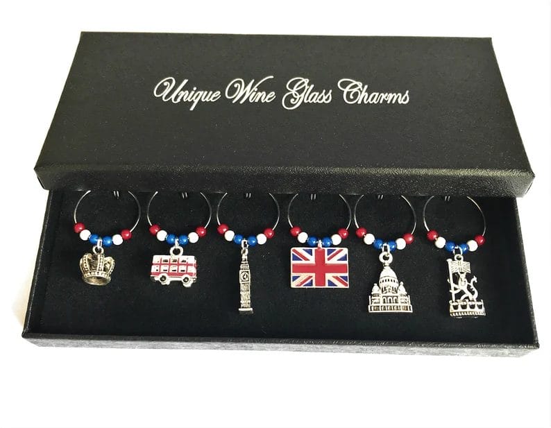 These wine glass charmers will make sure that everyone keeps track of their own glass while also allowing them to show off their love for the UK.
