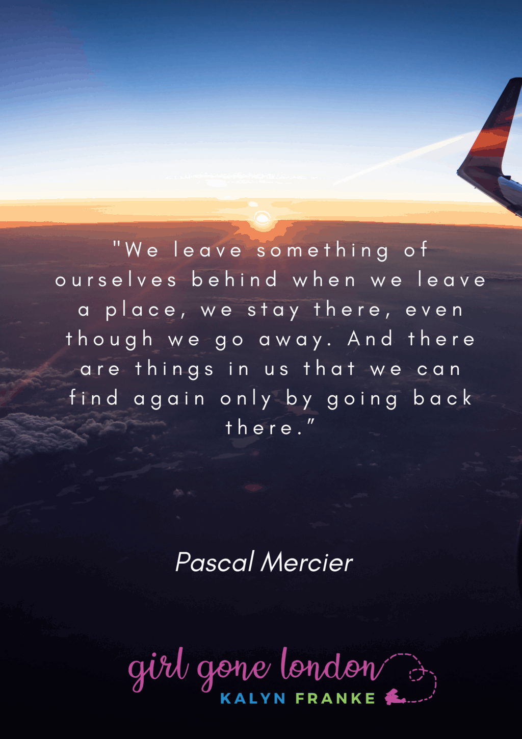9. “We leave something of ourselves behind when we leave a place, we stay there, even though we go away. And there are things in us that we can find again only by going back there.” – Pascal Mercier