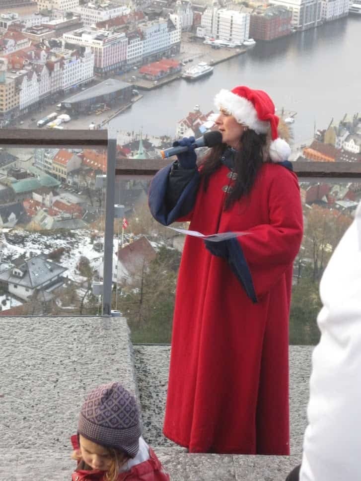 Come up to the top of the mountain via the funicular, or take the long way via the walking path, and sing Norwegian Christmas Carols as another candle is lit.