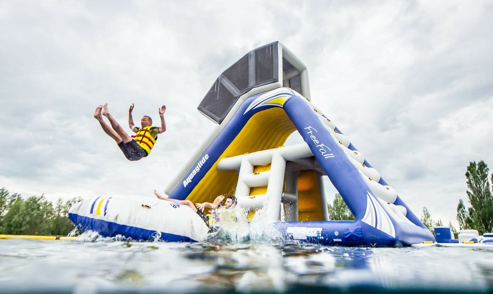The aqua park is open to those 6 and up, but a child under 10 must have an adult accompanying them on the inflatables.